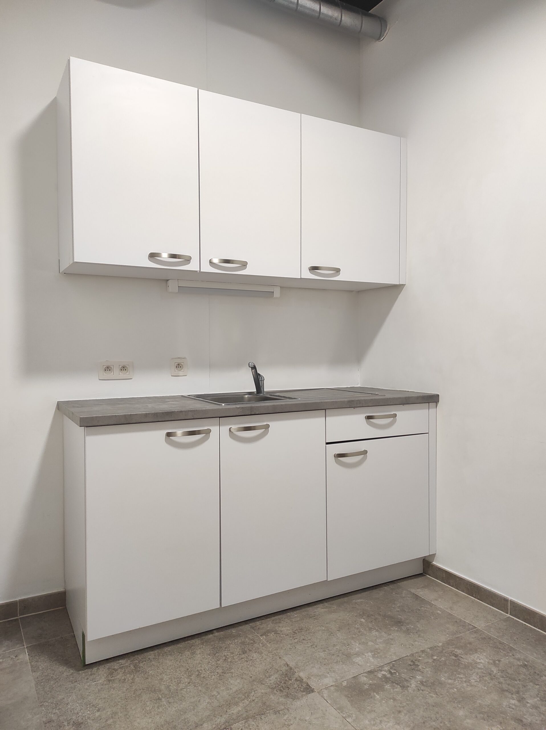 Cette cellule est équipée d’un revêtement de sol en carrelage, d’une kitchenette ainsi qu’un espace sanitaire.